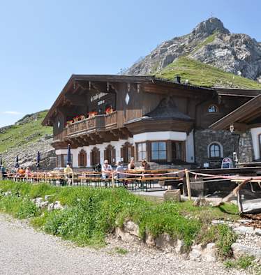 Von Oberstdorf mit der Nebelhornbahn bis zur Bergstation Höfatsblick fahren. Von da aus sind es nur mehr wenige Schritte zur Hütte.