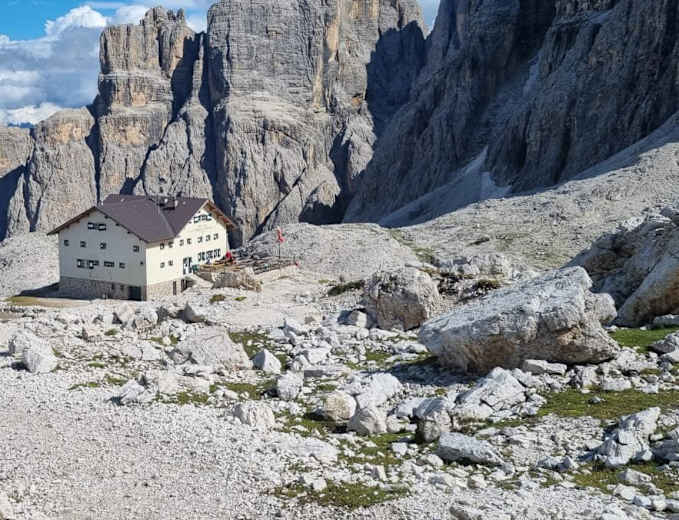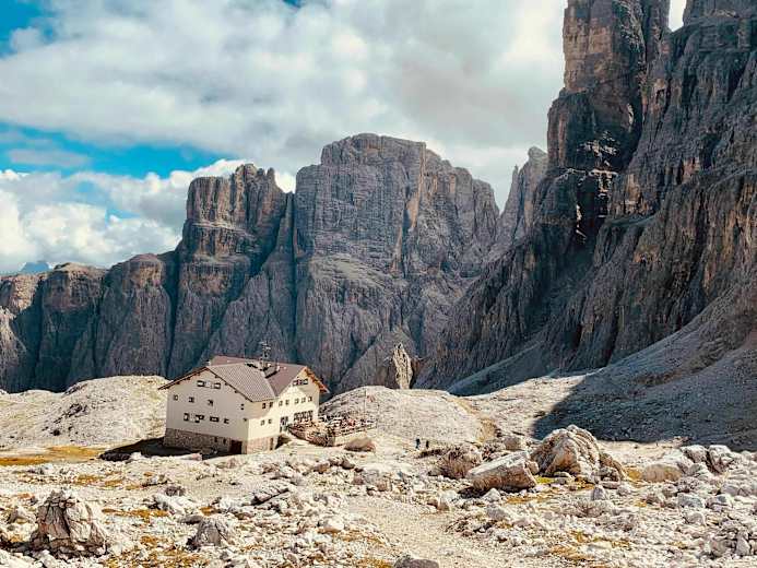 Die Pisciadù-Hütte (2.585 m) steht in der nördlichen Sellagruppe und südlich des Grödner Jochs Foto: Andreas Höh