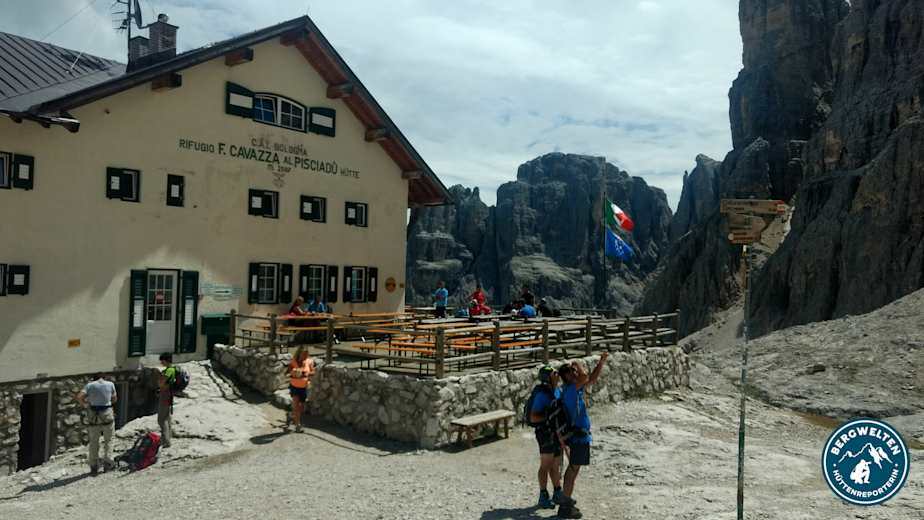 Die Hütte ist ihrer Umgebung angepasst. Alles Notwendige ist vorhanden, Unnötiges fehlt. Die Zimmer sind sauber und erfüllen ihren Zweck als Schlafgemächer. Hüttenwirt Renato Costa kocht einfache und gut Speisen (Speck, Polenta, Pasta) mit ladinischer Note. Die Terrasse beschenkt Gäste dafür mit reichhaltiger Augenkost. Und die Farbenspiele des Pisciadù-Sees sind in der kargen Schotter- und Felslandschaft der bleichen Sella-Gipfel eine Wonne.