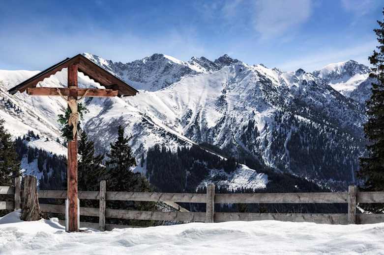 Etwa 560 Höhenmeter gilt es bei der Winterwanderung auf die Ehenbichler Alm (1.694 m) in der Naturparkregion Reutte in den Lechtaler Alpen zu bewältigen.