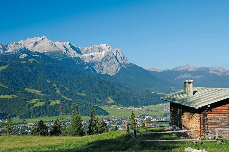 Von der Eckenhütte genießt man einen Traumblick auf Alp- und Zugspitze Foto: Stefan Herbke