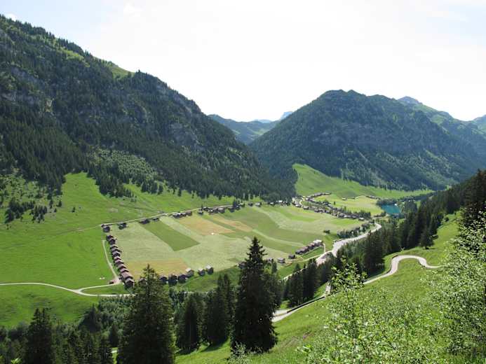 Beim alten Kulmer Tunnel kann man die interessante Ringbebauung vom Maisäß Großsteg betrachten.