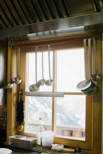 Abends besteht das Menü aus 3 Gängen, vegetarische Gerichte sind selbstverständlich. Versorgt wird das Haus 3x jährlich per Hubschrauber, was dabei nicht mit raufgebracht wird, muss zu Fuß geschleppt werden. Wasser kommt aus einer Quelle 700 m entfernt, es wird in das Haus gepumpt.