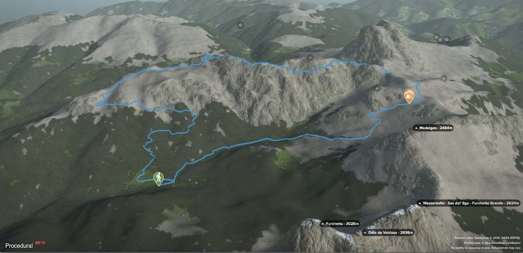 Über Almweisen geht es bergauf zu einem Joch. Hier biegt man nach rechts ab und genießt die Wanderung entlang dieses wunderschönen Höhenweges. Der Markierung folgend, wechselt man auf die Nordseite, die einem die schroffe Seite der Aferer Geiseln zeigt und Ausblicke auf die Plose gewährt. Die meiste Zeit bewegt man sich jedoch auf der Südseite des Bergkammes.