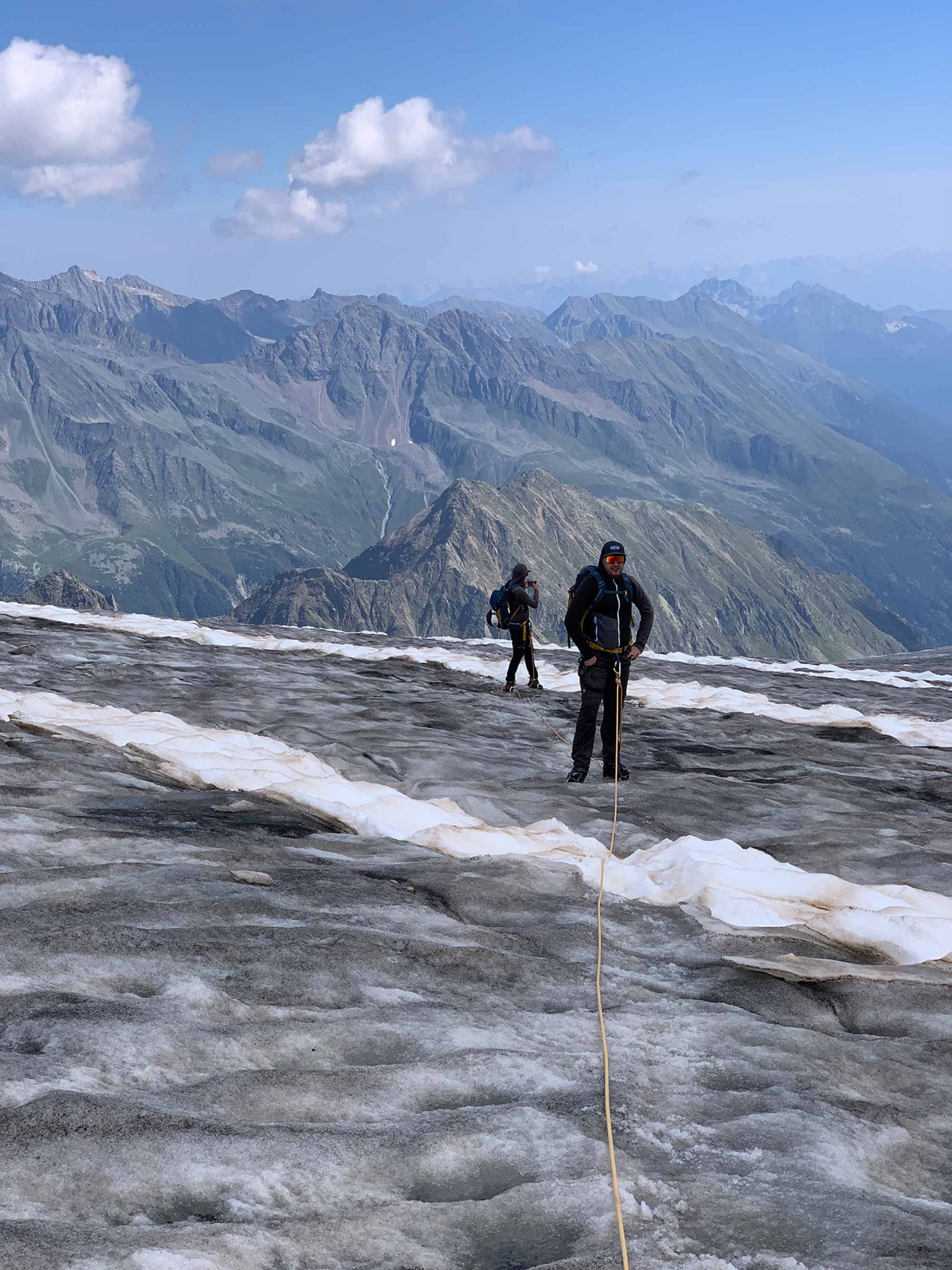 Bei aperem Gletscher (später in der Saison) sind die Spalten gut sichtbar. Foto: Matthias Knaus