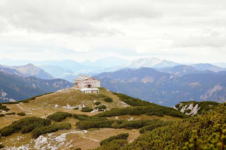 Das Habsburghaus (1.785 m) steht auf der Rax. Viele Wege führen zu diesem Schutzhaus, das wie eine Akropolis auf dem weiten Raxplateau thront. Einer davon beginnt in Hinternaßwald und führt über den Kaisersteig auf der ruhigen Seite der Rax hinauf.
