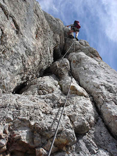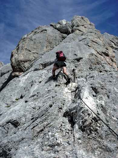 Bes. Gefahren: Steinschlaggefahr zu Beginn des Klettersteiges