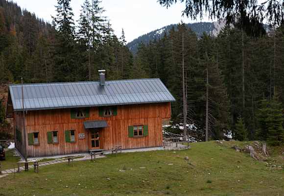 Mittelschwierige Mountainbike-Tour im Karwendel: Auf Forstwegen radelt man auf teils steilen Strecken von Hinterriss bis zur Vereiner Alm auf 1.400 m. Es ergeben sich immer wieder wunderschöne Ausblicke ins Risstal und auf die Spitzen des Karwendel, wie vor allem die Falkengruppe. Die Route in Tirol ist ein Teil der klassischen Karwendeltour.