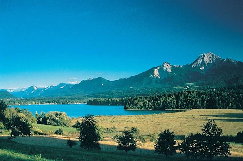 Der Ausgangspunkt der Drei Länder Tour liegt am Faaker See bei Villach. Zunächst geht es flach los auf der B85 Richtung Fürnitz. In Fürnitz angekommen biegt man rechts auf die B83 ab und nimmt die Autobahnunterführung. Danach gleich wieder nach links abbiegen Richtung Unterfederaun/Unterschütt. Die Straße führt am Fuße des Naturpark Dobratsch entlang und wird eher wenig befahren.