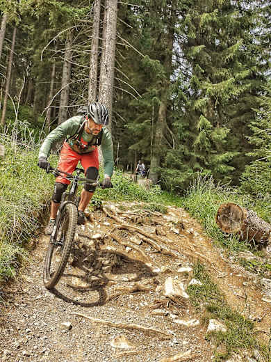 Nach der anstrengenden Auffahrt über 1000 Höhenmeter zur Grubigsteinalm genießt man eine wunderbare Aussicht auf das Zugspitzmassiv. Dann folgt der sehr anspruchsvolle Singletrail zum Blindsee, einem der drei Seen am Fernpass. Die Rückfahrt nach Lermoos ist dann wieder gemütlicher.