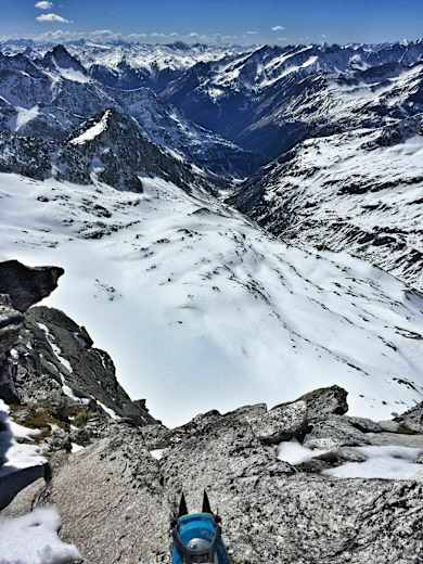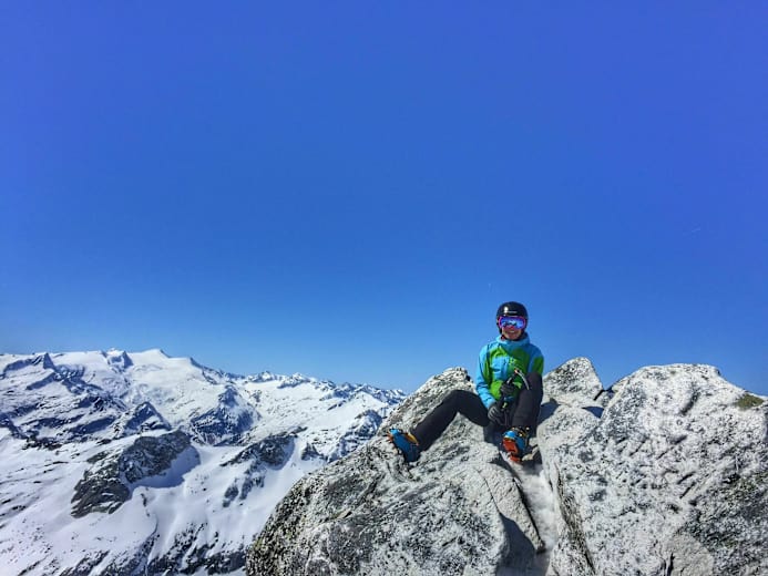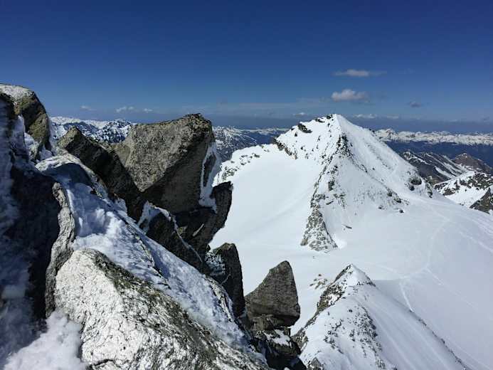 In zum Teil luftiger Blockkletterei (Stellen II) gelangt man in ca. 30 Minuten auf den Gipfel (3.086 m), der eine atemberaubende Aussicht auf den Nationalpark Hohe Tauern bietet. Für den finalen Gipfelanstieg können je nach Verhältnissen Pickel und Steigeisen hilfreich sein.