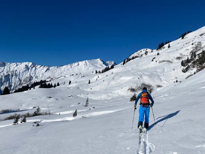 Die einfache und aussichtsreiche Skitour in den Allgäuer Alpen von Baad im Kleinwalsertal über die Ochsenhoferscharte, 1.850 m, bis ins Schwarzwassertal zur Schwarzwasserhütte ist eine beliebte Skitour in Vorarlberg. Durch ihren gemächlichen Aufstieg und die relativ leichten Abfahrten ist sie auch für Einsteiger oder eine schnelle Halbtagestour geeignet. Mit Ausblick auf die Baader Bergumrahmung und den Hohen Ifen wird man Zeuge einer geologischen Einzigartigkeit im Kleinwalsertal – das Aufeinandertreffen der afrikanischen und europäischen Kontinentalplatte. Der Aufstieg am Südhang Richtung Ochsehoferscharte verspricht eine sonnige und warme Tour. Bei der Abfahrt ins Schwarzwassertal kann man die guten Schneebedingungen des Nordhangs und einen beeindruckenden Blick auf den Hohen Ifen genießen. Vom Schwarzwassertal aus warten weitere Gipfelziele im Kleinwalsertal für Skitourengeher, die nicht genug bekommen können.