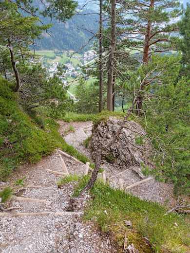 Am Anfang geht es 150 m flach bevor ein Waldweg hinauf bis zu den ersten Steilstufen führt. Die letzte 200 Hm führen über steile Holz- und Felsstufen bis zum Ziel am Gogghüttl.