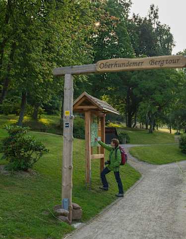 Zum Auftakt schwebt man vom Parkplatz mit der Seilbahn hinauf nach Oberburg (alternativ: steiler Fußweg zum Schloss, Wegweiser ab Parkplatz). Der Wanderweg beginnt hinter dem Schloss am gebührenpflichtigen Parkplatz (Hinweis „Fußweg nach Höhrath“, Markierung x19). Es geht zunächst bergab, nach einem Bach-Einschnitt stetig bergauf und an der Gabelung links.