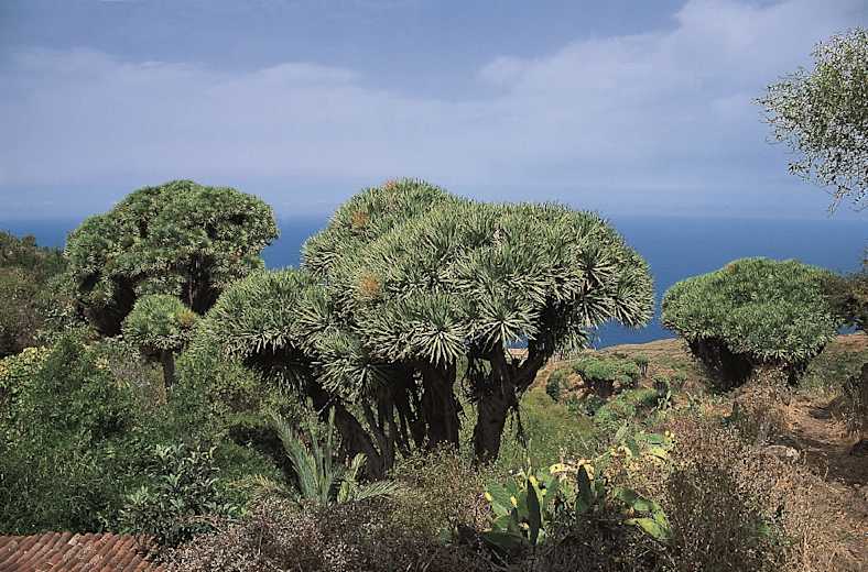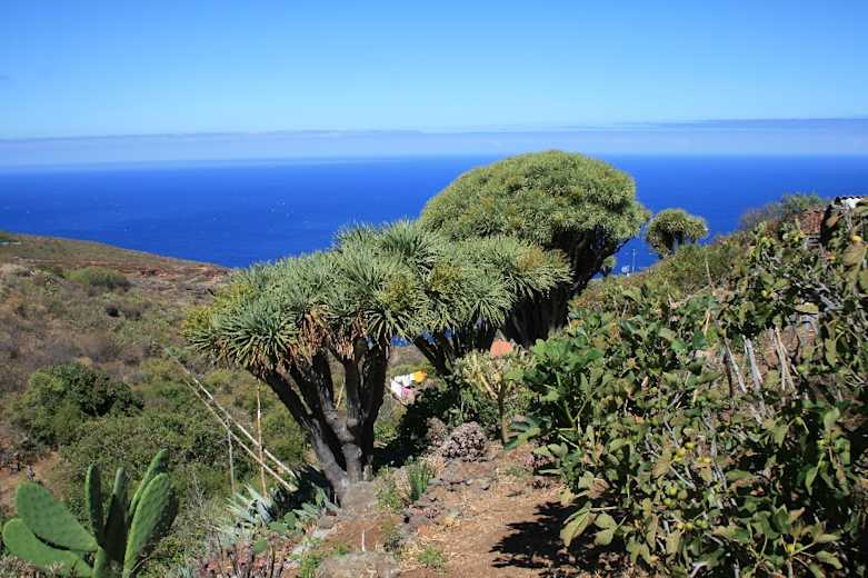 Gemütliche Runde durch Drachenbaumhaine und blühende Gärten: In der Umgebung von Las Tricias (790 m) erlebt man ein La Palma wie aus dem Bilderbuch: Üppige Gärten, liebliche Drachenbaumhaine und der stete Blick hinaus auf den weiten Ozean prägen diesen von der Natur so gesegneten Landstrich – und mitten durch dieses Paradies führt unser Wanderweg auf den kanarischen Inseln.