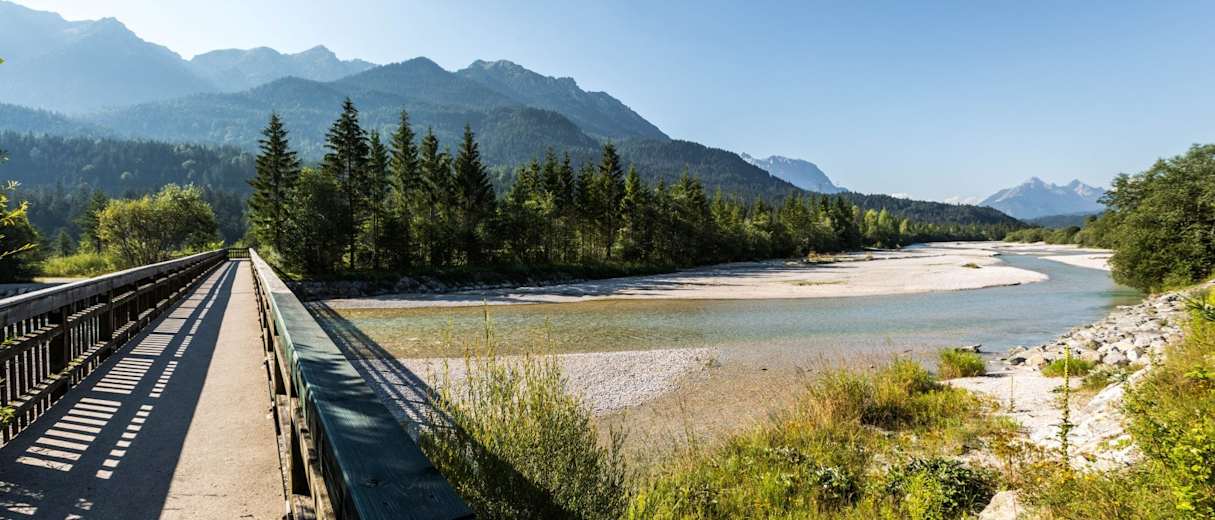 Auf dem Isartaler Rundwanderweg erwandert man die schönsten Flecken zwischen Karwendel und Wetterstein und kann dabei noch ein Stück Geschichte erleben. Auf der Tagestour sind zwar nur 490 Höhenmeter zurück zu legen, allerdings benötigt man für die 37 Kilometer etwa zehn Stunden und somit eine gute Kondition. Auf dem Weg laden jedoch viele gemütliche Biergärten und Gasthäuser zu einer guten Brotzeit ein und das herrliche Panorama von Karwendel und Wetterstein entschädigt für jede Anstrengung.