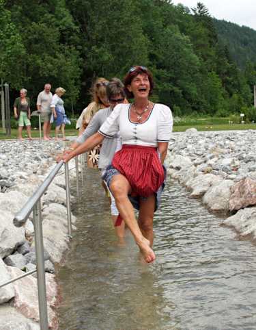 Die Anlage wurde ausschließlich mit in der Natur vor Ort vorhandenen Materialien Holz, Steine, Schotter, Erde, Kräuter und Gebirgsquellwasser in den Mörchenwald mit den künstlerisch hochwertig dargestellten Grimm-Märchen integriert gebaut.Hinweise zur richtigen Anwendung auf beschrifteten Holztafeln!ELEMENTE..... Bewegung - Wasser - Kräuter - Ruhe und KraftELEMENT BEWEGUNG• 2 km Märchenwald - Rundweg mit einigen leichten An- bzw. Abstiegen, vorbei an den lebensgroßen, künstlerisch dargestellten Märchenstationen durch Naturmischwald, geflutet von würziger, sauerstoffreicher Wald- und Gebirgsluft.• Barfußbereich auf Naturmaterialien, Rundhölzer, Schotter, Tannen- und Fichtenzapfen und Nadeln, Hackschnitzel.• Der steinige Weg – griffige Bachsteine in Schrittabständen im Naturgelände verlegt, zur Schulung von Blick, Geschick und Trittsicherheit.• Die Balancierbäume – lange, naturbelassene, am Naturboden verlegte Fichtenstämme, zur Schulung des Balancegefühls• Der Hackschnitzelweg – Abzweiger vom Wanderweg ins Naturgelände – über Baumwurzelstufen auf eine kleine Anhöhe, im Naturwald zwischen Bäumen, hin und her – auf und ab, und über eine Steilstufe wieder zum Weg hinab. ELEMENT WASSER• Wassertreten – mit Baumstämmen eingegrenzter, mit Bachschotter aufgeschütteter und mit ca. knöcheltiefem Gebirgsquellwasser gefluteter Bereich – eingefasst mit Haltestangen bzw. im Wasserbett liegende Natursteine zum Raufsteigen, falls das ca. 10° Wasser einmal etwas zu kalt wird. Nach dem Abtrocknen gibt es ein wunderbar warmes und belebendes Gefühl in den Füßen.• Armbad, Fußbad – permanent mit Quellwasser geflutete Wassertröge für die Wasseranwendung an Armen und Beinen. Die richtige Anwendung ist den Kneipptafeln beschrieben.• DER SCHINDLBACH KRÄUTERBERG• gebaut aus Steinen, Baumstümpfen, Schotter und Erde, mit dem Baumwurzelkreuz auf 608 m Seehöhe, bepflanzt mit in der Natur wachsenden Kräutern, welche auf beschrifteten Bachsteinen beim Namen genannt werden.ELEMENT RUHE UND KRAFT• Die beiden Ruhe- und Kraftplätze „Schwalbenmauer und Dornröschen“ wurden unter fachlicher Kompetenz von Frau Mag. Waltraud Ruth vom Österr. Kneippbund auf Grund ihrer besonders schönen, ruhigen, von würziger Gebirgsluft gefluteten Lage als ideal geeignete Standorte ausgewählt. Auf beschrifteten Holztafeln erfährt man auf einfache, verständliche Weise, wie man Ruhe und Kraft tanken kann.