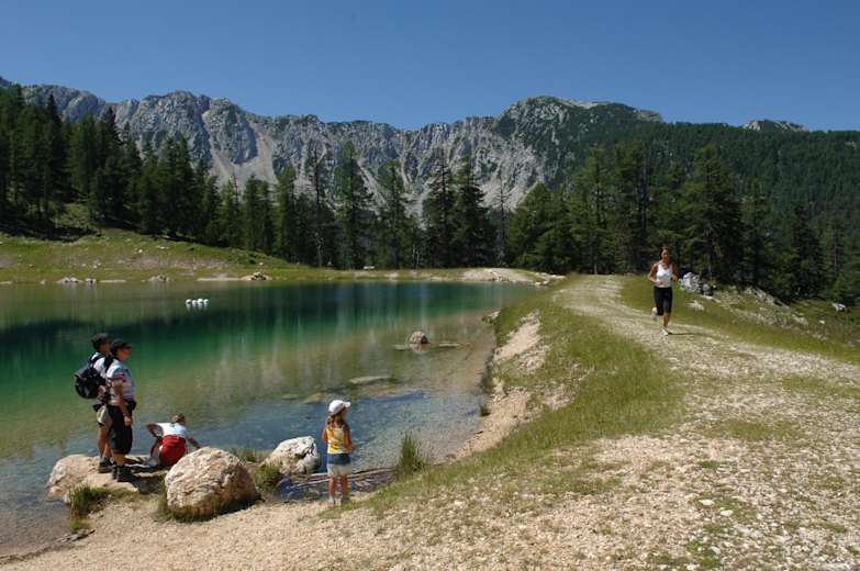 Von der Petzen Bergstation wandert man durch einen schönen Lärchenwald Richtung Siebenhüttenlift. Bergauf gehend, passiert man die St. Anna-Kapelle und steigt, die Baumgrenze hinter sich lassend, auf den Kniepssattel.