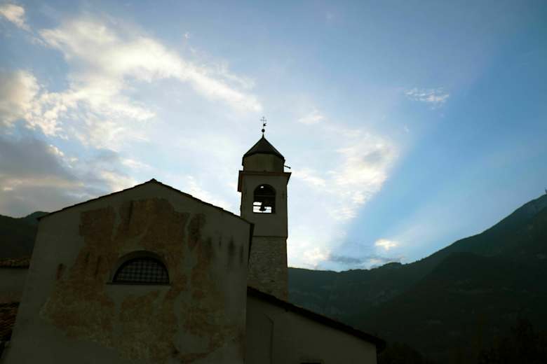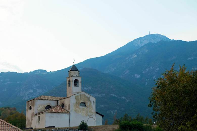 Am Gipfel des Dos dei Nozi angekommen, beeindruckt nicht nur das Panorama in die umliegenden Berge, sondern auch die Kirche aus dem 14. Jahrhundert mit einem angrenzenden Friedhof.