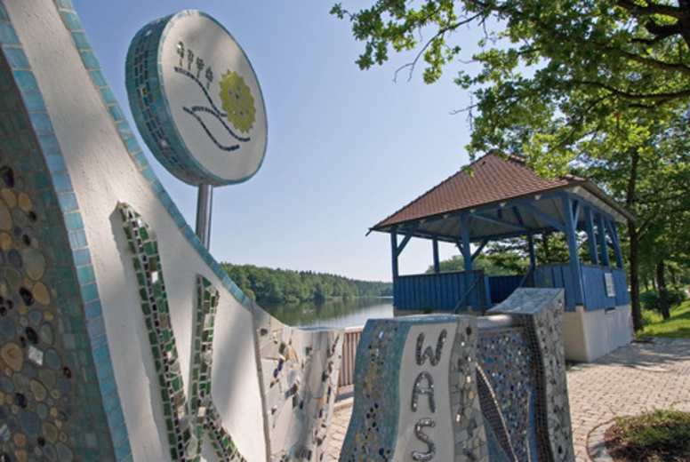 Der Goldsteig Zuweg Nr. 24A führt von Bodenwöhr an den Hammersee zum Badeplatz Blechhammer. Lohnende Wanderung für die ganze Familie in der bayerischen Oberpfalz.