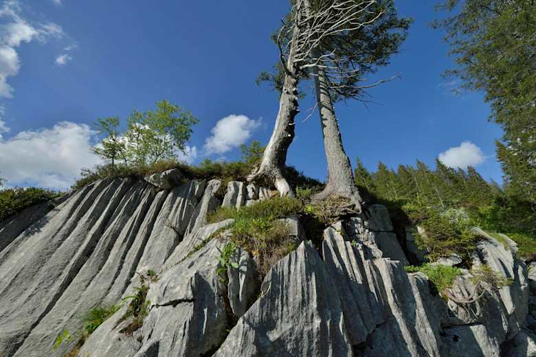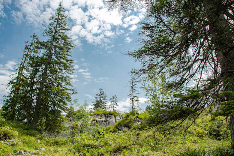 Äusserst lohnende und lehrreiche Wanderung im Kanton Schwyz durch einen der letzten "Urwälder" der Schweiz: Tief im Muotatal, auf einem verkarsteten, mit tiefen Spalten und Karren durchsetzten Plateau unterhalb des Pragelpasses, krallen sich uralte Fichten, strauchförmige Moorbirken, knorrige Bergföhren neben einsamen Weisstannen und Buchen in den steinigen Untergrund. Hier im Bödmerenwald - einem der drei letzten "Urwälder" der Schweiz - sind über 300 Pflanzen- und mehr als 250 Moosarten beheimatet, die es auf dieser Wanderung zu bestaunen gilt.