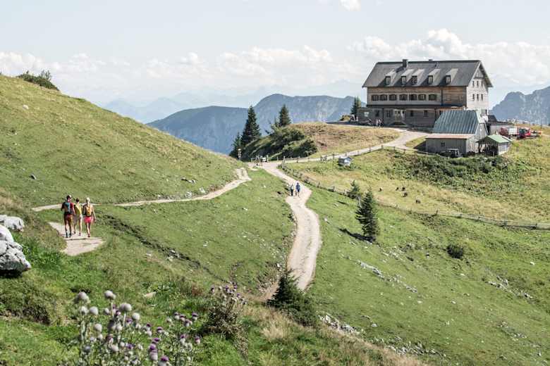 Für die weitere Wanderung folgt mann dem Weg Nr. 642, der westlich des Lampersberges in bestem Wandergelände über die Bergwiesen führt.Schließlich macht der Weg eine scharfe Biegung nach links und führt leicht abwärts, das letzte Stück parallel zur Fahrstraße, direkt zum Rotwandhaus auf 1.737 m, welches auf einer aussichtseichen Schulter unterhalb der Rotwand steht.