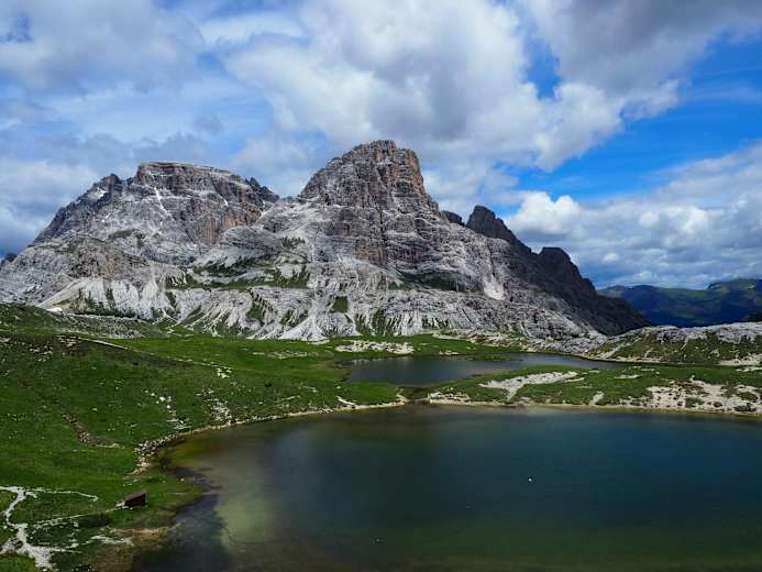 An den Cengia-Seen vorbei geht es nun wieder aufwärts in Richtung Büllelejoch. Hier sieht man noch Relikte aus dem 1. Weltkrieg, die mahnend an die schreckliche Zeit erinnern, als der Paternkofel hart umkämpft war. Der 10-minütige Abstecher zur Büllelejochhütte lohnt sich!