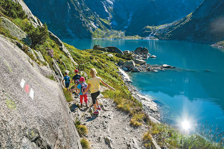 Ab 7 Jahren. Mittelschwere und teilweise ausgesetzte Wanderung auf ausgebauten Wegen, sehr gute Trittsicherheit bei Kindern erforderlich (T3).