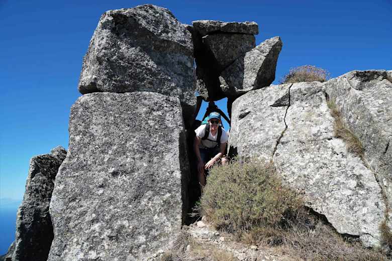 Am Gipfel des Monte Capanne (1.018 m) ist kurzzeitig Schluss mit Bergeinsamkeit, da über eine originelle, etwas antiquierte Seilbahn Massen von Strandtouristen zum höchsten Aussichtspunkt der Insel befördert werden. Anfänglich etwas steiler, dann immer flacher werdend führt die GTE weiter nach Osten. Der Monte Perone (630 m) und der Monte Castello (227 m) bieten noch eindrucksvolle Blicke zur Küste, ehe man die Hauptstraße und über diese in wenigen Minuten Procchio erreicht.