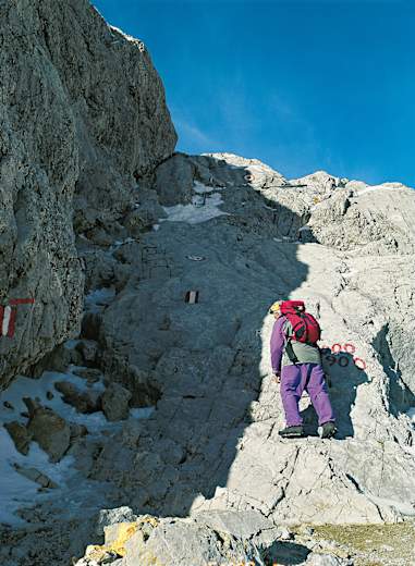 Steigbügel helfen über das letzte Hindernis zum Gipfel. Foto: Rother Bergverlag - Sepp Brandl Bildergalerie (4)