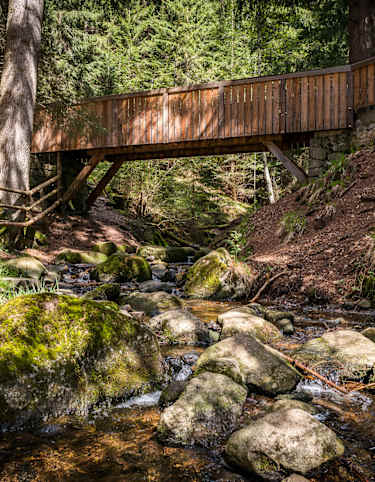Der Wanderweg folgt stets dem Lauf des Lambinbaches und führt durch frische Fichtenwälder.