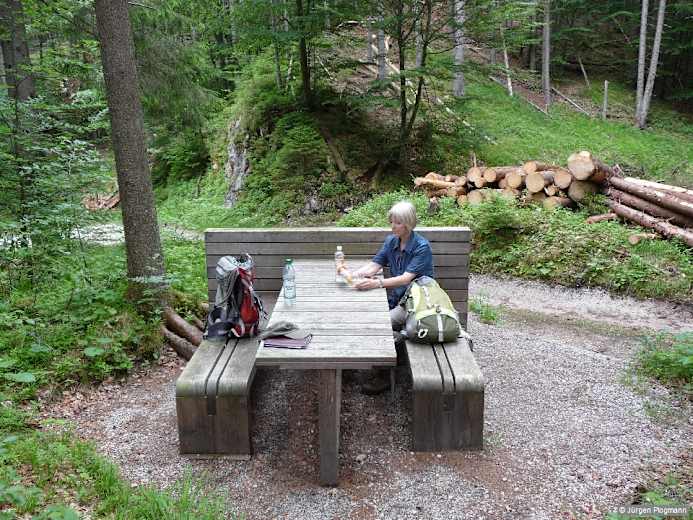 Am höchsten Punkt unserer Wanderung, an einem Lech-Rastplatz, 1030 m, biegen wir links ab. Foto: Jürgen Plogmann, Rother Bergverlag