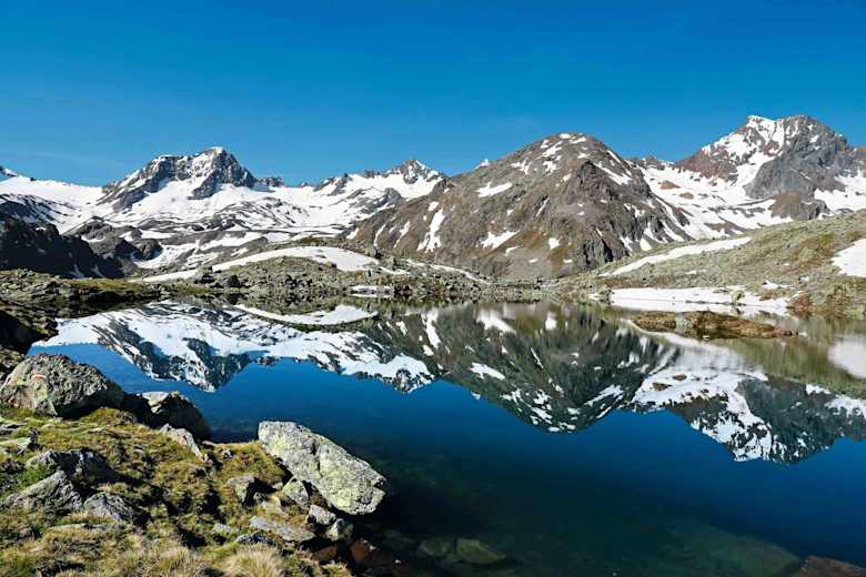 Malerischer Bergsee im Stubaier Talschluss: Das innerste Stubaital hat durch das Gletscherskigebiet fraglos landschaftliche Beeinträchtigungen erfahren. Abseits von diesen Eingriffen und dem damit verbundenen touristischen Treiben finden wir mit dem Mutterberger See jedoch ein zauberhaftes Kleinod, das uns umso bewusster macht, welch große Bedeutung dem Natur- und Landschaftsschutz im sensiblen Hochgebirgsgefüge zukommt. Nach rund dreistündigem Aufstieg dürfen wir uns am Spiegelbild der Gletscherberge berauschen und die Seele ein wenig baumeln lassen …