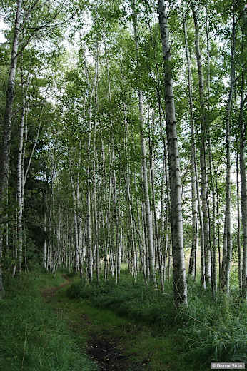 Vor dem Bahnübergang (dahinter gleich links das gute Restaurant Soumarská hospoda) gehen wir nach rechts, erneut in den Campingplatz hinein, und folgen hier zunächst der grünen Markierung. Wir biegen nach etwa 150 m nach links von Grün ab und gehen dann auf einem etwa 1,5 km langen Lehrpfad nach links direkt ins Moor hinein. Der Lehrpfad endet an einem Aussichtsturm im Süden des Moors. Obwohl man von diesem Turm direkt hinüber zum Moldauufer und damit wieder zur grünen Markierung gelangen kann, gehen wir jedoch zurück bis zum Anfang des Lehrpfads und setzen die Wanderung mit Grün nach links fort. Denn sonst versäumen wir einige der herrlichsten Panoramen.