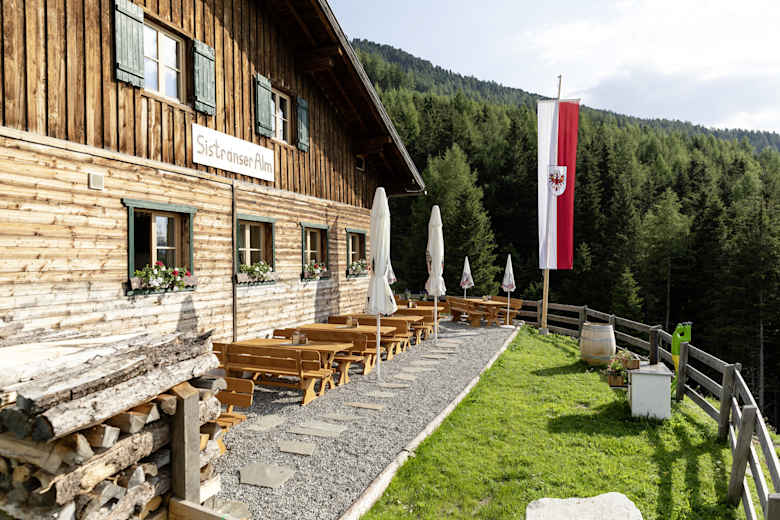 Die Sistranser Alm befindet sich auf 1.608 m Höhe an der Nordseite des Patscherkofels in den Tuxer Alpen. Der Hausberg der Innsbrucker wird von zahlreiche Gästen - Wanderern und Mountainbikern - gerne besucht und die Sistranser Alm ist dabei eine willkommen Einkehrstätte, auf der sogar übernachtet werden kann. Zu Fuß erreicht man die schöne Alm über einen Waldsteig von Sistrans.
