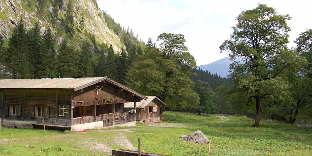 Auf dieser abwechslungsreichen Runde im Naturpark Karwendel in Tirol wandert man entlang imposanter Wandfluchten, die durchaus ein hochalpines Gefühl vermitteln. Während der Almsaison kann man auf der gemütlichen Rohntalalm einkehren. Ausgangspunkt der Tour ist die Hinterriß.