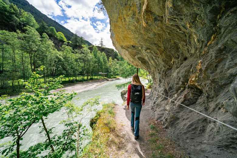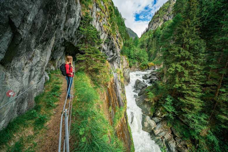 Der Weg führt vom südlichen Einstieg der Klamm - vorbei an ruhigen Flussauen - hinein in die über 120 m tiefe Schlucht. Über 100 m stürzt der mächtige Steiner Wasserfall in die Klamm und spendet dir an heißen Sommertagen eine kühlend frische Gischt.
