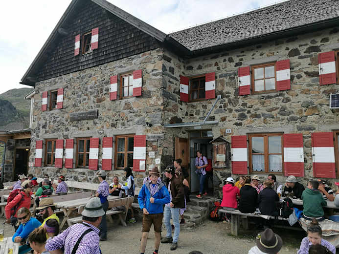 Wieder zurück am Weg 8A, folgt man diesem ins „Rotstoanloch“ mit dem kleinen Getrumsee bevor man über den Weg Nr. 7C und später 7 mit kleinem Gegenanstieg zum Schutzhaus Latzfonser Kreuz inklusive Kapelle gelangt.