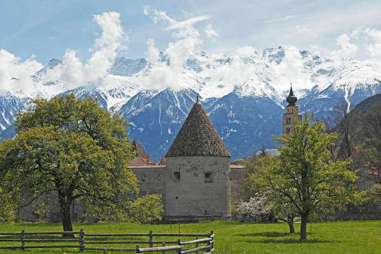 Ab der Pankratiuskirche in Glurns gelangt man über den Wanderweg Richtung St. Martinskirchlein.