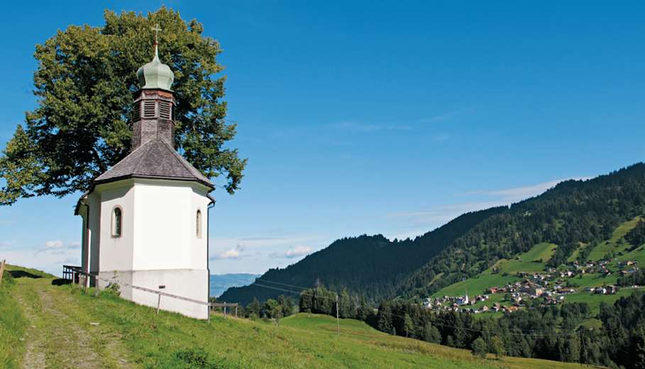 Diese aussichtsreiche Höhenwanderung im Bodensee-Rheintal führt durch das Laternsertal, vom Gerachhaus (1.550 m) zum Hinterjoch (1.624 m), über die Obere Hensleralpe (1.480 m) und Untere Leuealpe nach Innerlaterns-Hof.