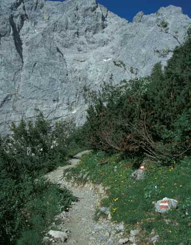 Nach der Gipfelrast wandert man am Anstiegsweg wieder zurück nach Obernach.