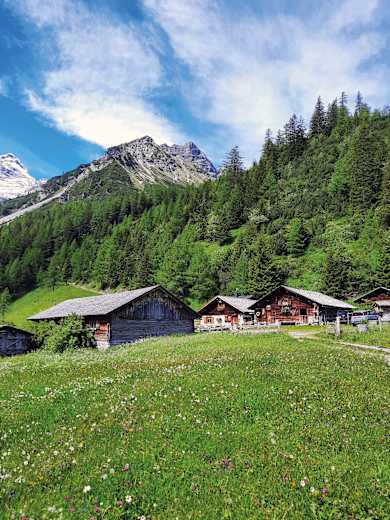 Eine urige kleine Alpe inmitten des unberührten Zalimtals, der Bergregion Rätikon in Vorarlberg. Man begeht den märchenhaften Pfad, streift an plätschernden Quellen und dem Glingabrunnen, eine Reihe von Quellen, die ihren unterirdischen Zufluss aus dem Brandner Gletscher beziehen, vorbei und genießt die wundersame Stille. Stehenbleiben, Augen schließen und die Natur genießen.