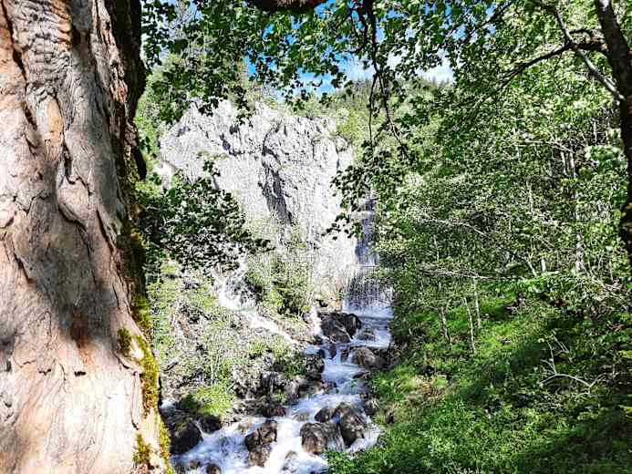 Einkehrmöglichkeit Familientour Hüttenzustieg Wasserfall am Weg