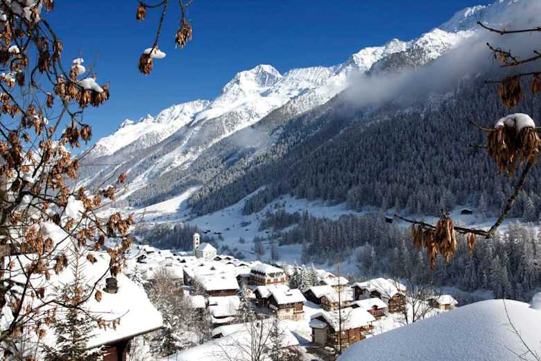 Von Goppenstein aus fährt man ins Lötschental bis nach Ferden, Dorf.