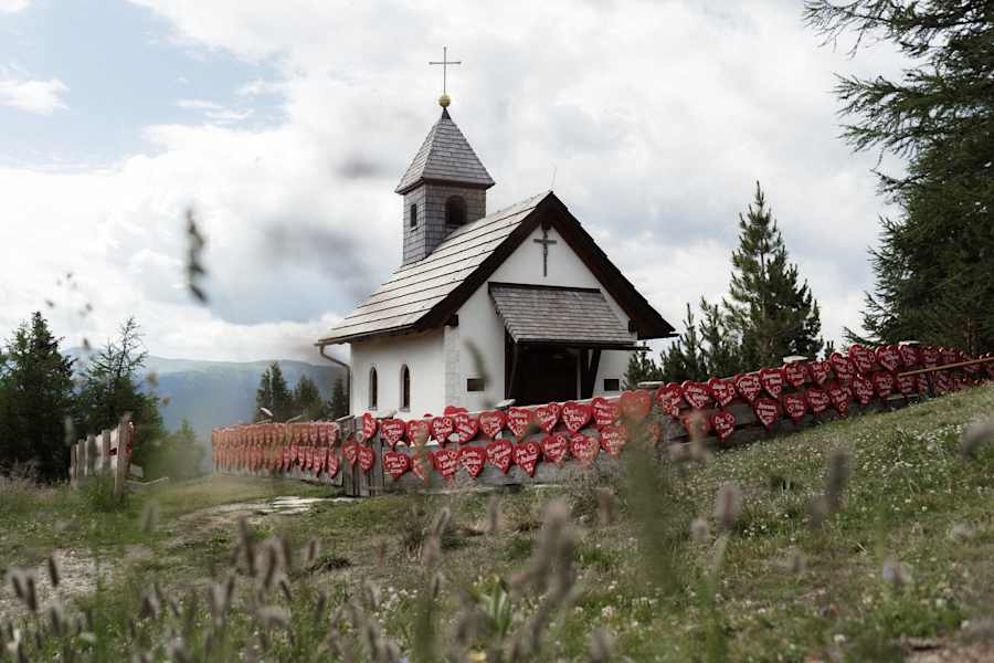 Im Herzen von Alta Badia, am Fuße des Sassonghers in den Dolomiten liegt die Ütia Col Pradat. Wer hier seine Hochzeit feiert, muss sich bei der Gästeliste nicht zurückhalten. Bis zu 200 Personen haben hier Platz. 20 davon können auch auf der Hütte schlafen und für den Rest finden sich in der Umgebung weitere Schlafplätze. Hinauf und hinunter kommt man mit der 8-Sitzer-Kabinenbahn oder zu Fuß. Die Ütia Col Pradat begrüßt Hochzeitsgesellschaften sowohl im Sommer als auch im Winter.
