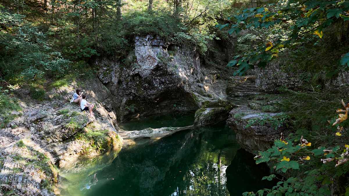Nicht immer liegen die schönsten Naturbadeplätze am anderen Ende der Welt. Die Taugl in Salzburg ist so ein Fall. Der Gebirgsbach bei Bad Vigaun, ein paar Kilometer südöstlich von Hallein, hat über die Jahrtausende spektakuläre Schluchten in die Landschaft gespült. Besonders im Oberlauf des Flusses sind so einige schöne Badeplätze entstanden. Hier gibt es auch mehrere tiefere Becken. Auf den abgeschliffenen Steinplatten rundherum können Besucherinnen und Besucher sich ausbreiten.