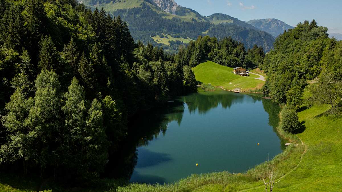 Für Familien, die gerne wildbaden gehen möchten, aber trotzdem ein wenig Infrastruktur schätzen, ist der Seewaldsee im Großen Walsertal eine gute Wahl. Das Auto muss man in Fontanella Säge stehen lassen und einen halbstündigen Spaziergang zum See zurücklegen. Wer viel zu tragen hat, kann aber mit dem kleinen Bummelzug von hier zum See hinauffahren.