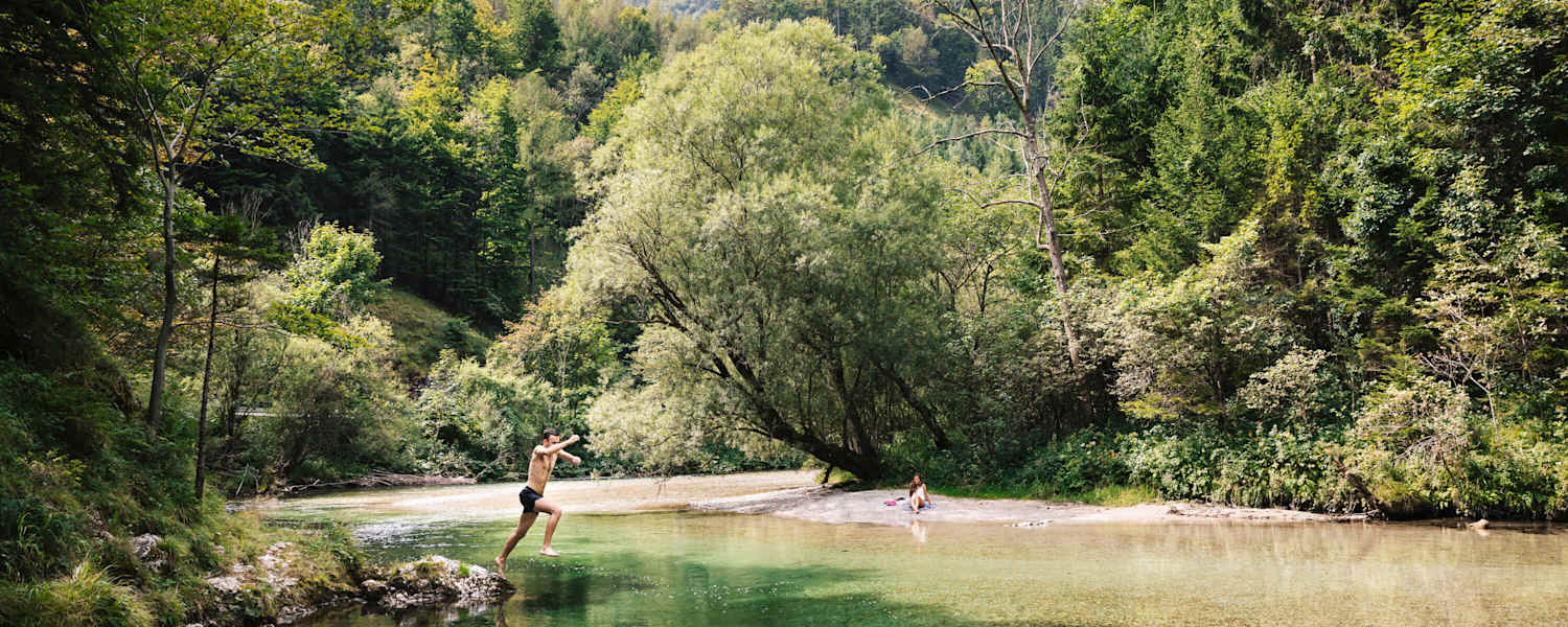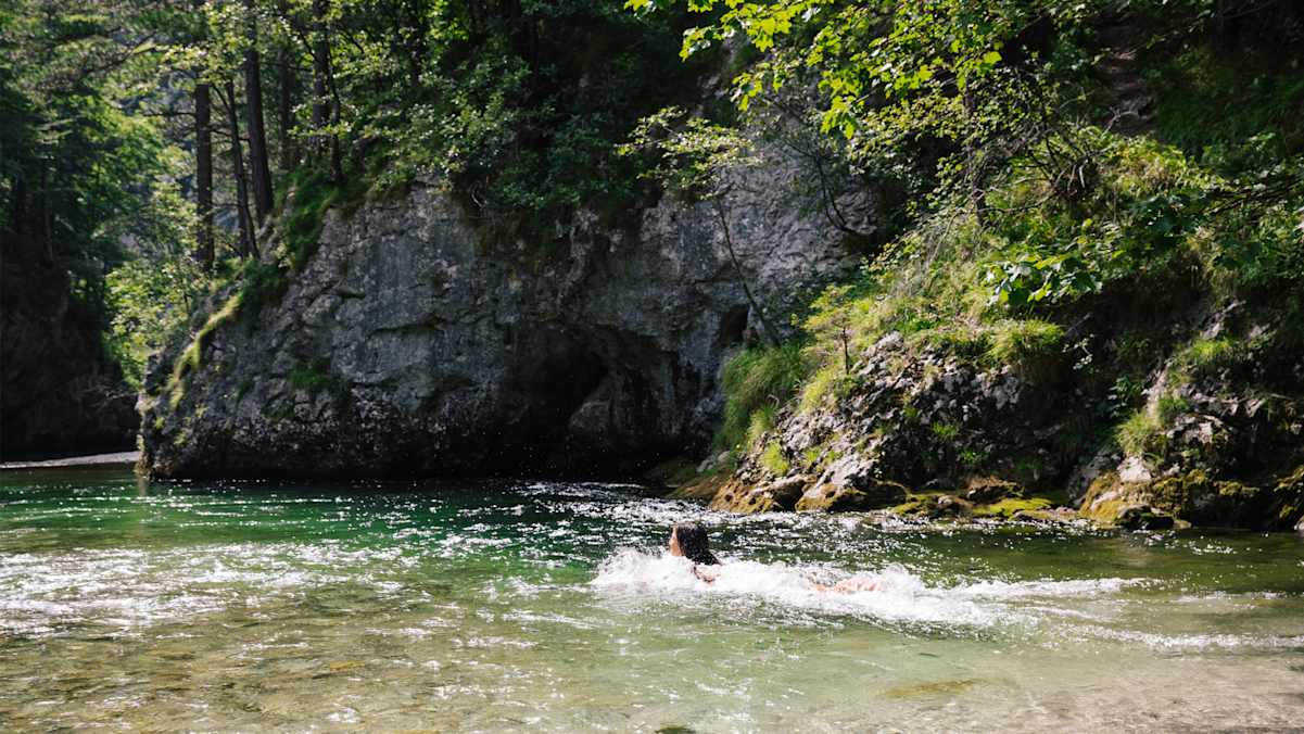 Es gibt Orte, wo man bequemer zum Wasser kommt. Aber ganz ehrlich: Es gibt nichts Schöneres, als mitten in der Natur zu schwimmen. Elf Geheimtipps zum Wildbaden in den Alpen.