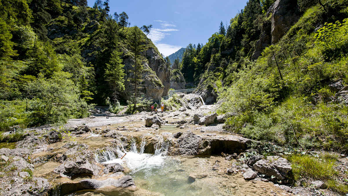 Von Reutte aus führt der Hermannsteig den Bach entlang und weiter bis zum Plansee, in dem man übrigens auch wunderbar schwimmen kann.