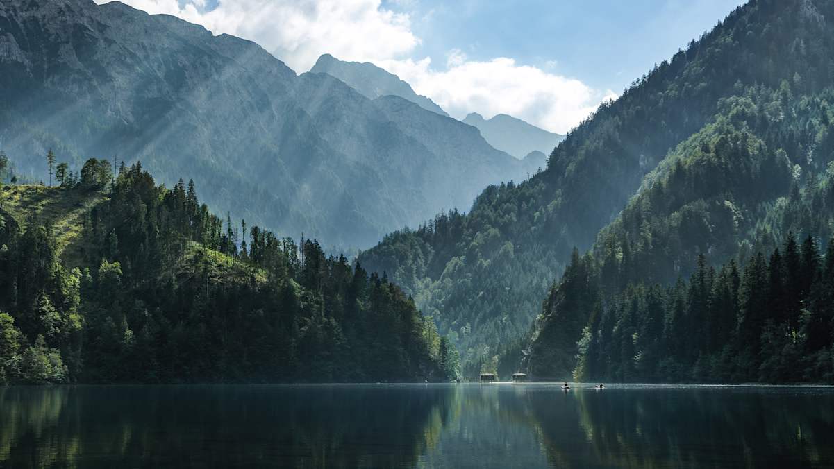 Ein Stück südlich von Bad Mitterndorf, zwischen dem Kemetgebirge und den Ausläufern des Grimming, wird die Salza breiter und schließlich zum Salza-Stausee. Der wurde 1947 auf einer Länge von fünf Kilometern angelegt. Und wäre da nicht die Staumauer an seinem Ende, würde man nicht auf die Idee kommen, dass der See ein künstlich angelegtes Gewässer ist. An einigen Stellen könnte man glatt meinen, dass man an einem norwegischen Fjord unterwegs ist. Es gibt rund um den See viele Wege ins Wasser. An der Nordseite kann man sich aber auch einfach ein Boot ausleihen, damit rausfahren und dann in den wilden Stausee hüpfen.